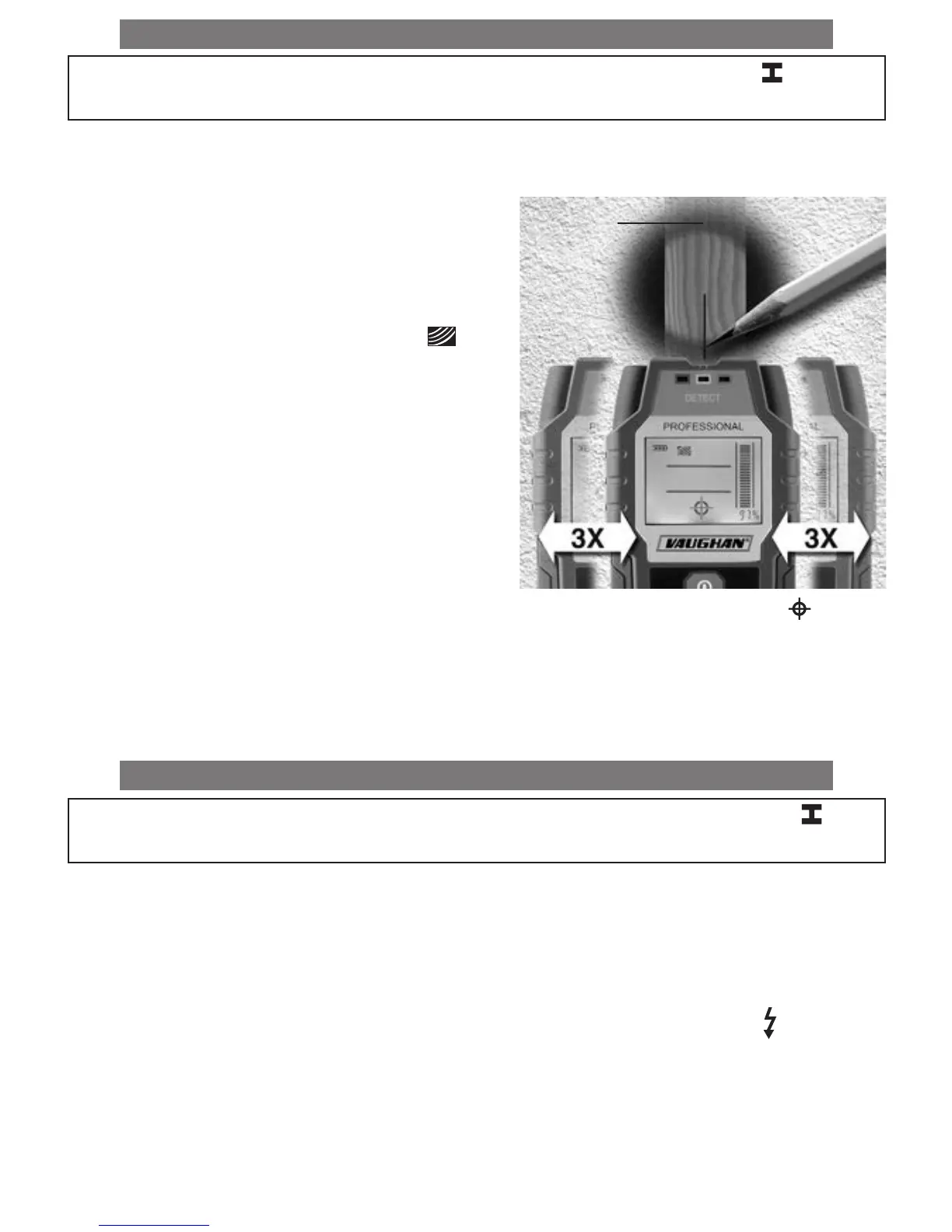 the center of the sensor, indications will be at their max readings accompanied by cross-hair icon ( ), constant