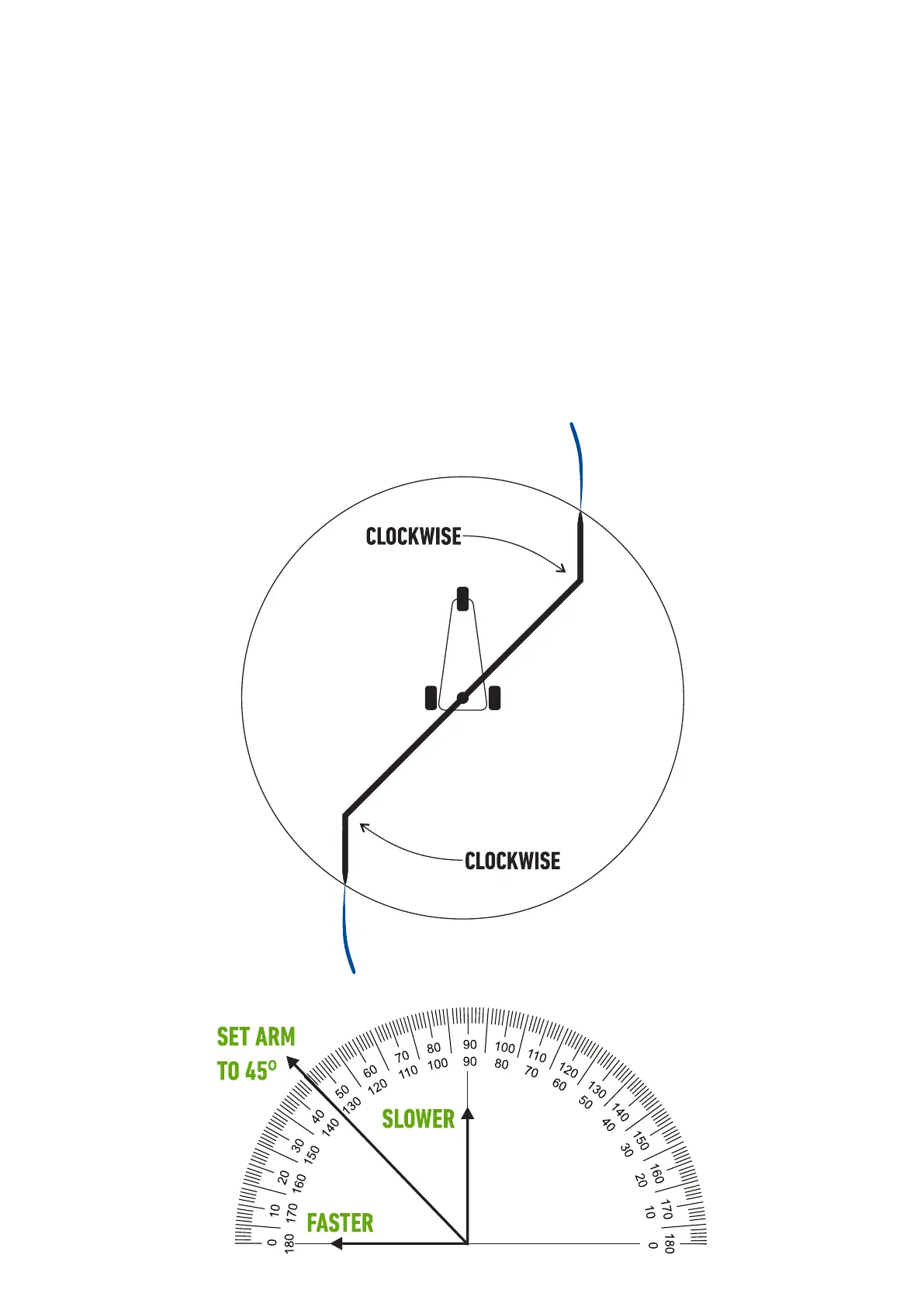 Arm rotation must be clockwise. The outer arms should be set at approximately 45. Adjust vertically