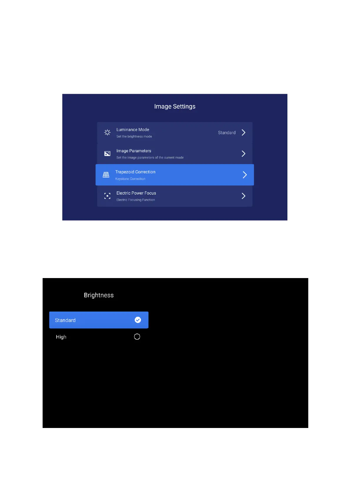 1) Fényerő üzemmód Standard - normál fényerőhöz; High - nagyon fényes környezetben