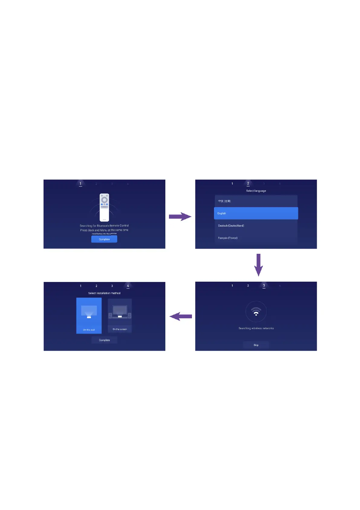 Zapněte podle pokynů, projděte průvodcem, včetně následujících kroků: