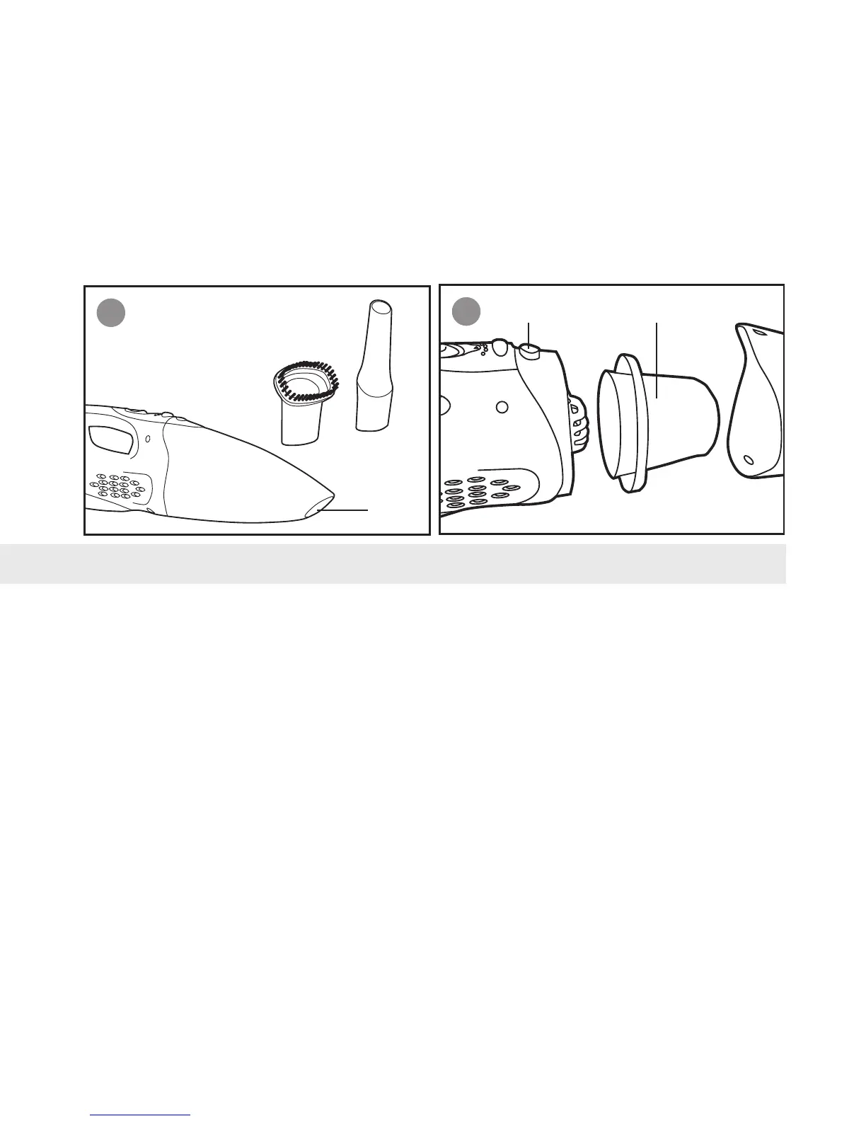 after every use. To open the front nozzle, press the release button (B) and remove the dust container.