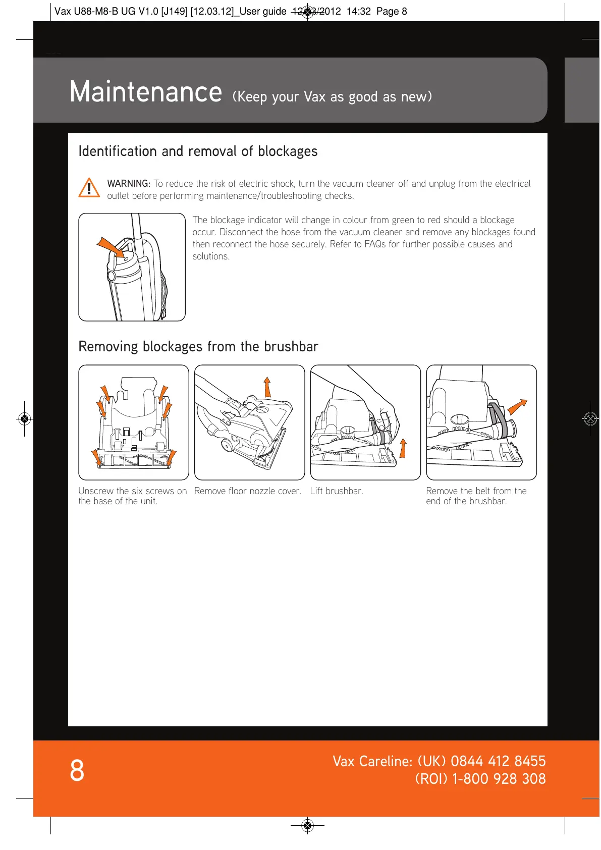 Vax U88-M8-B UG V1.0 [J149] [12.03.12]_User guide 12/03/2012 14:32 Page 8