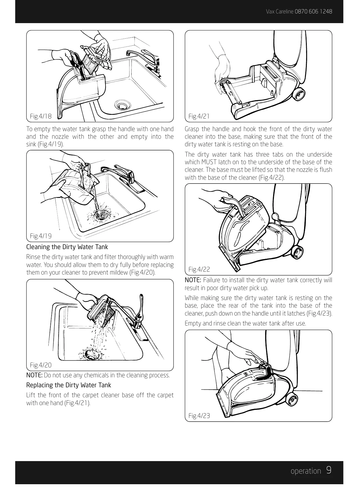 cleaner, push down on the handle until it latches (Fig.4/23).