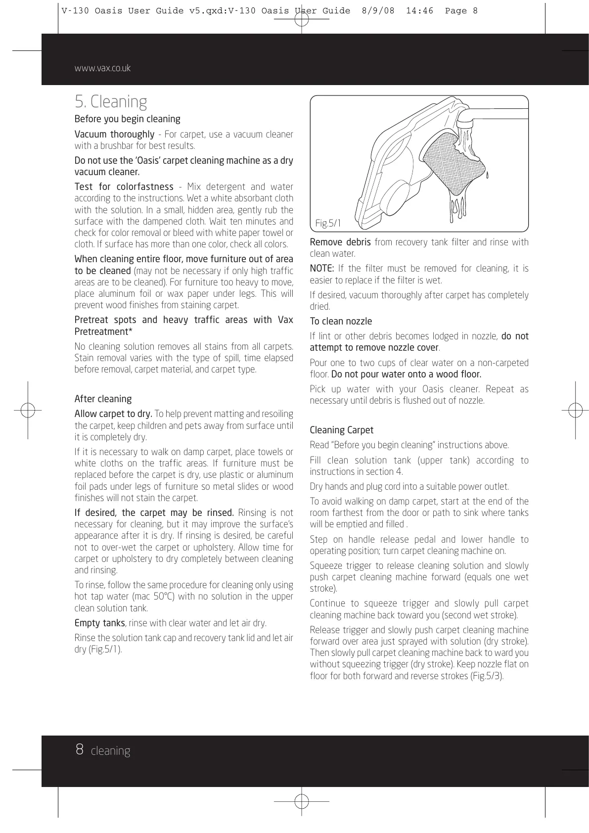 Pretreat spots and heavy traffic areas with Vax