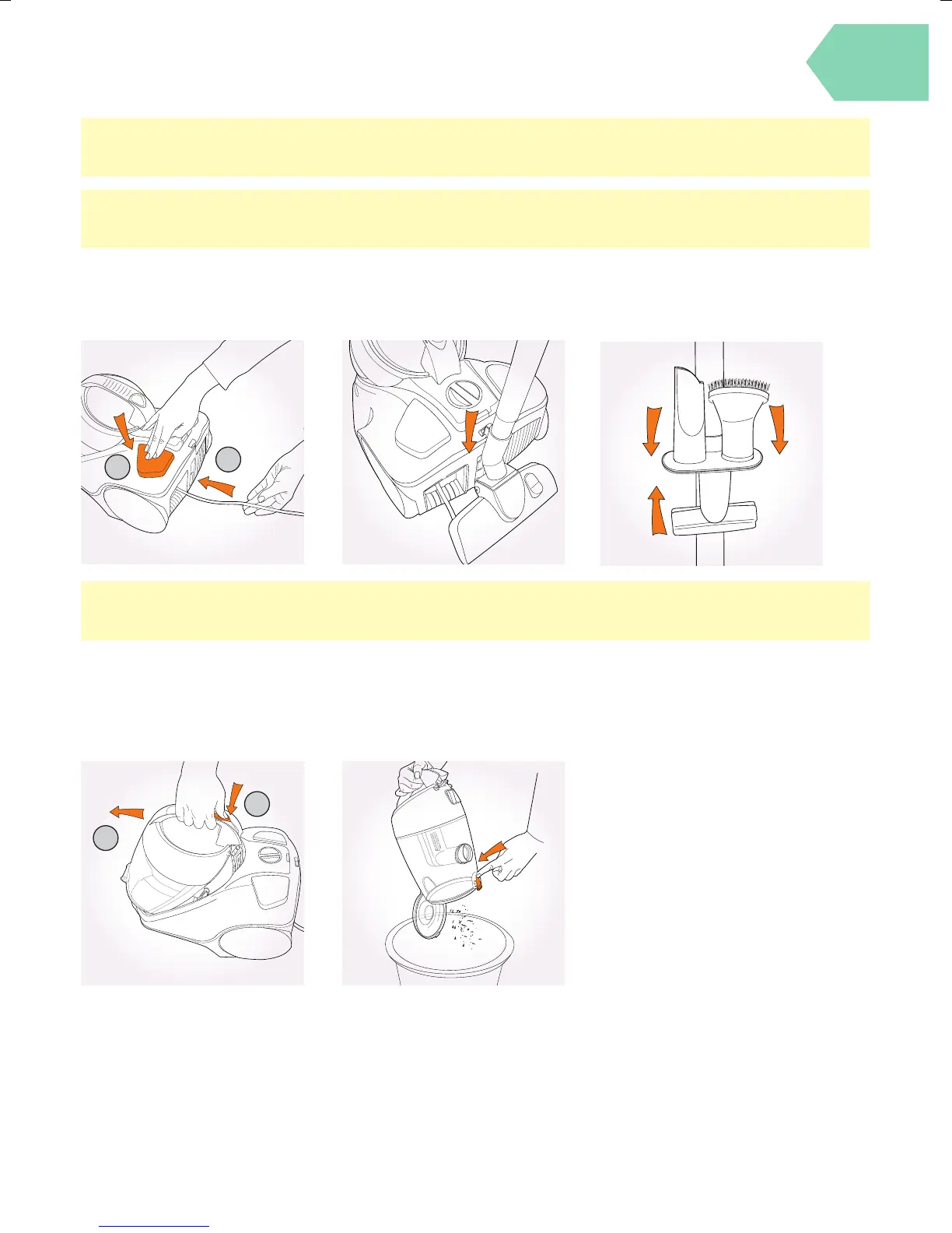 opening or emptying the dirt container or before connecting/disconnecting the attachments.