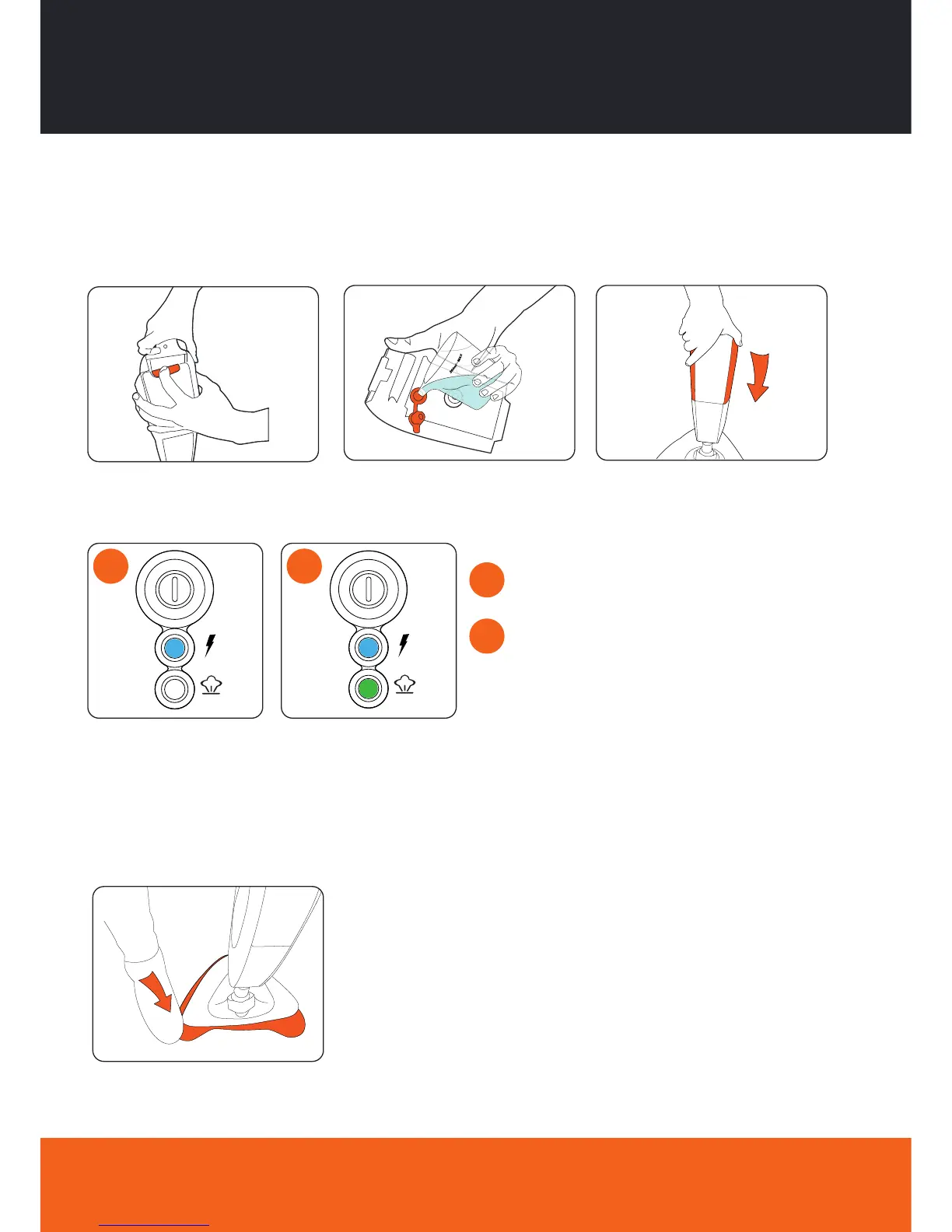 IMPORTANT: Never use the stick steam mop without the microfibre cleaning pad correctly attached