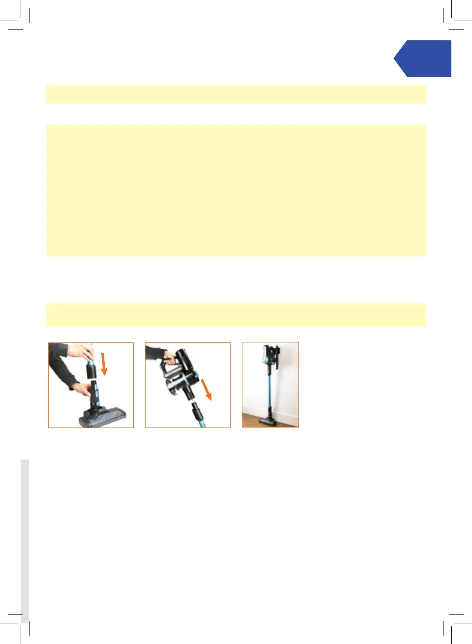 CAUTION: This vacuum cleaner is not free standing. In between uses or when carrying out any maintenance always