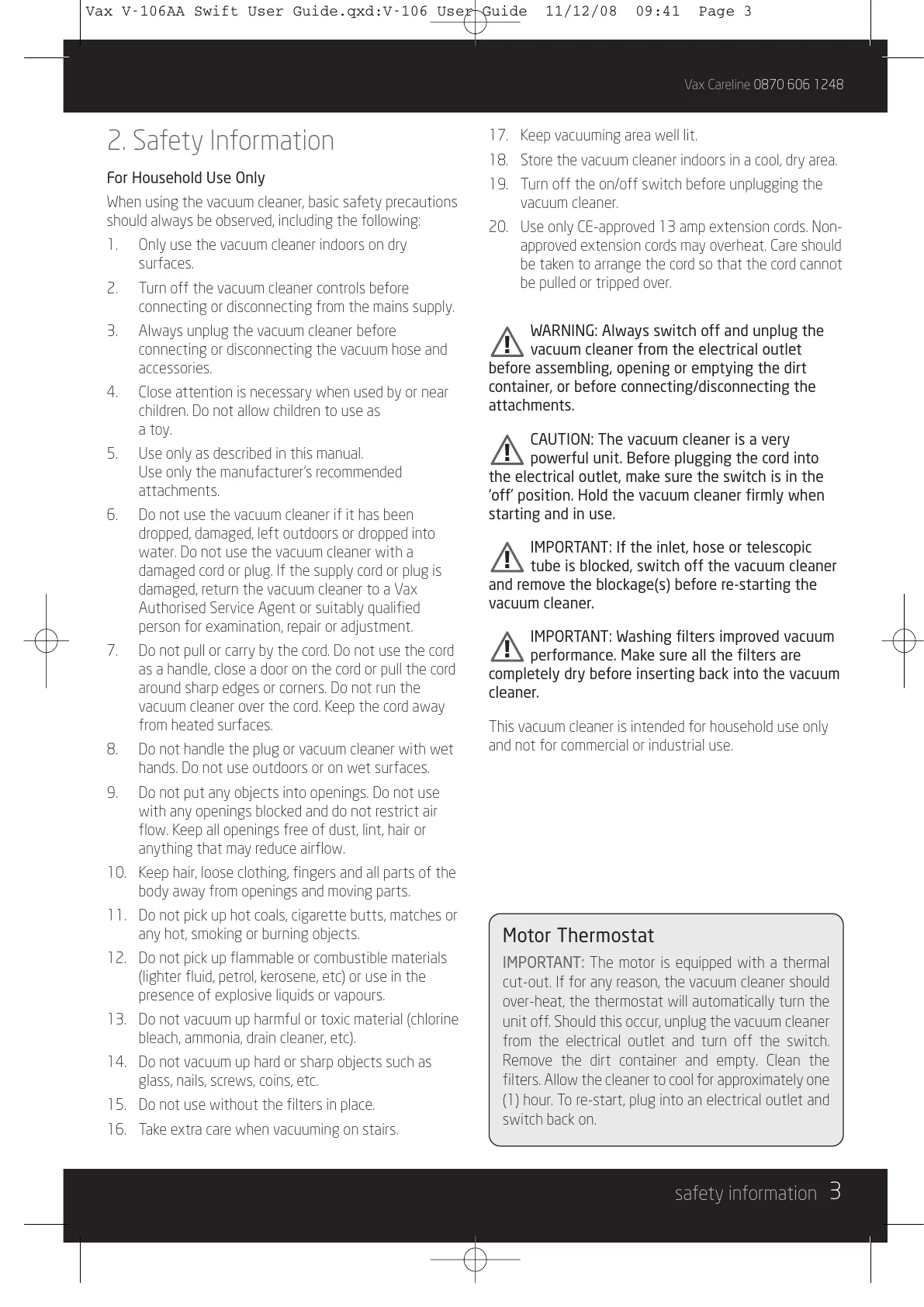 18. Store the vacuum cleaner indoors in a cool, dry area.