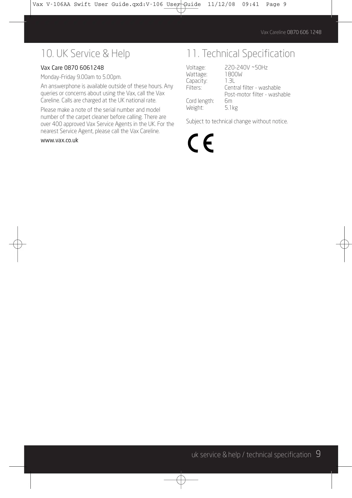 uk service & help / technical specification