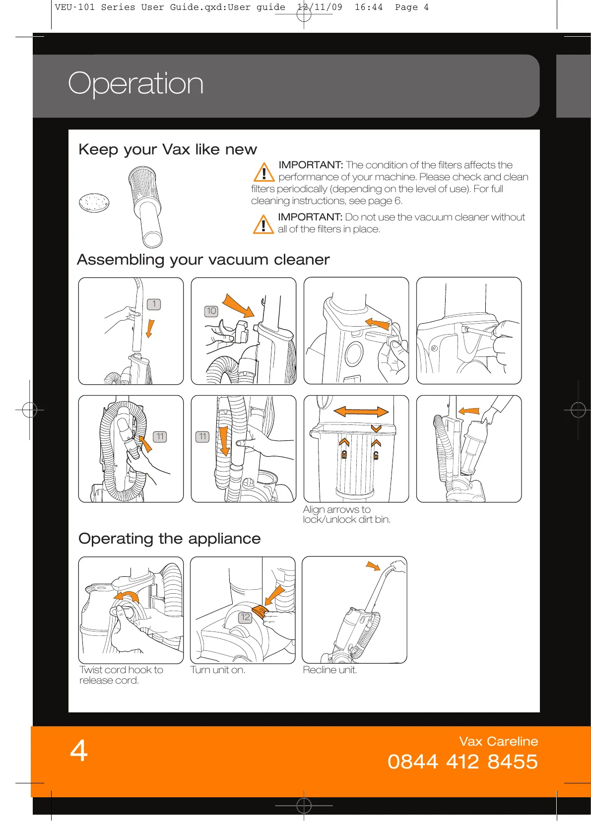 IMPORTANT: Do not use the vacuum cleaner without