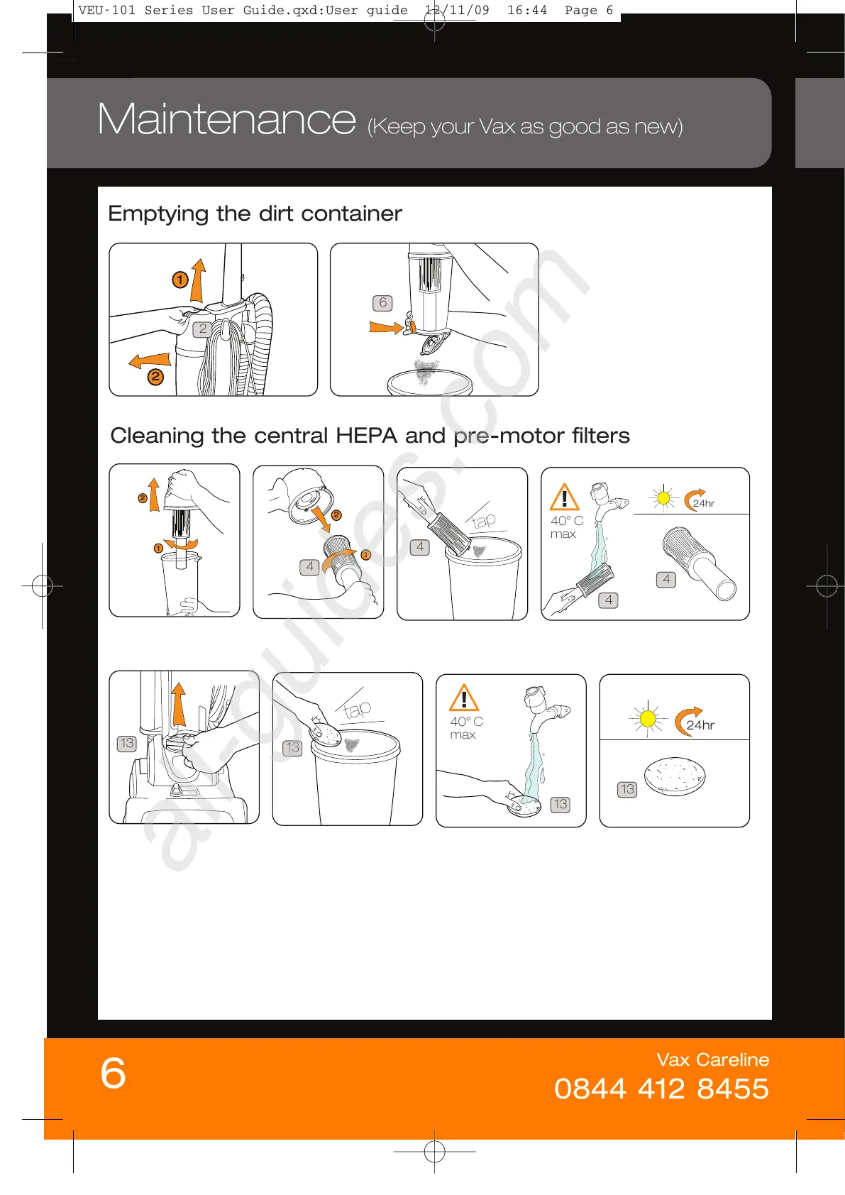 Vax VEU-101 - Maintenance