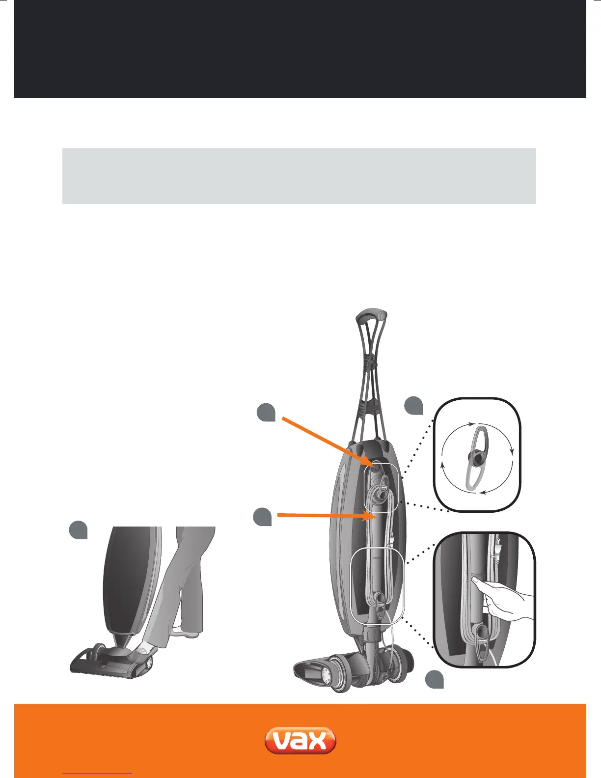 full upright position to engage lock. NOTE: Do not operate the vacuum while in the upright and locked position. Do not let the