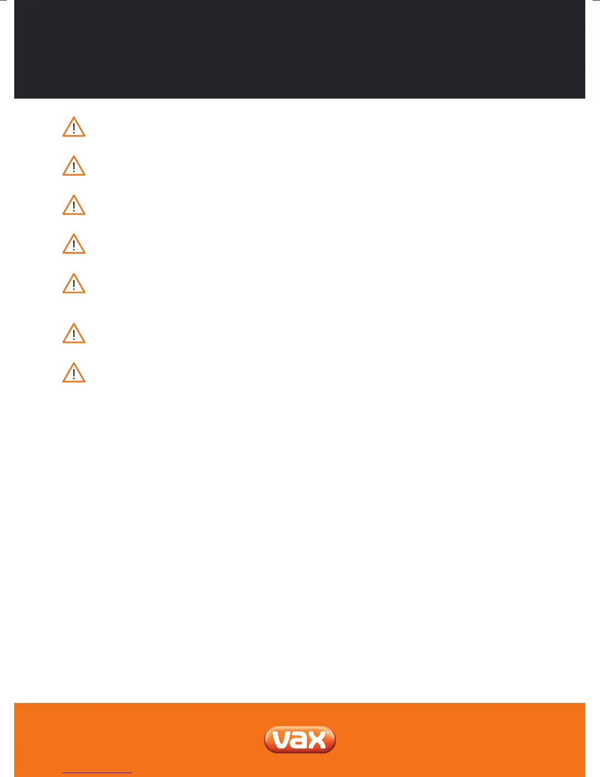 IMPORTANT: Vax recommends the use of Residual Current Device Rating of 30mA or less.