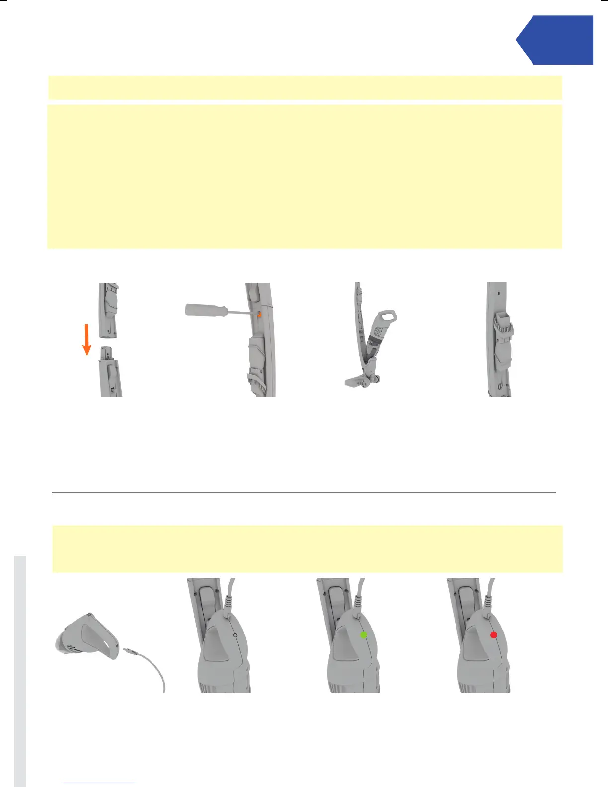 CAUTION: Always switch o the vacuum cleaner before connecting or disconnecting the handheld/attachments or