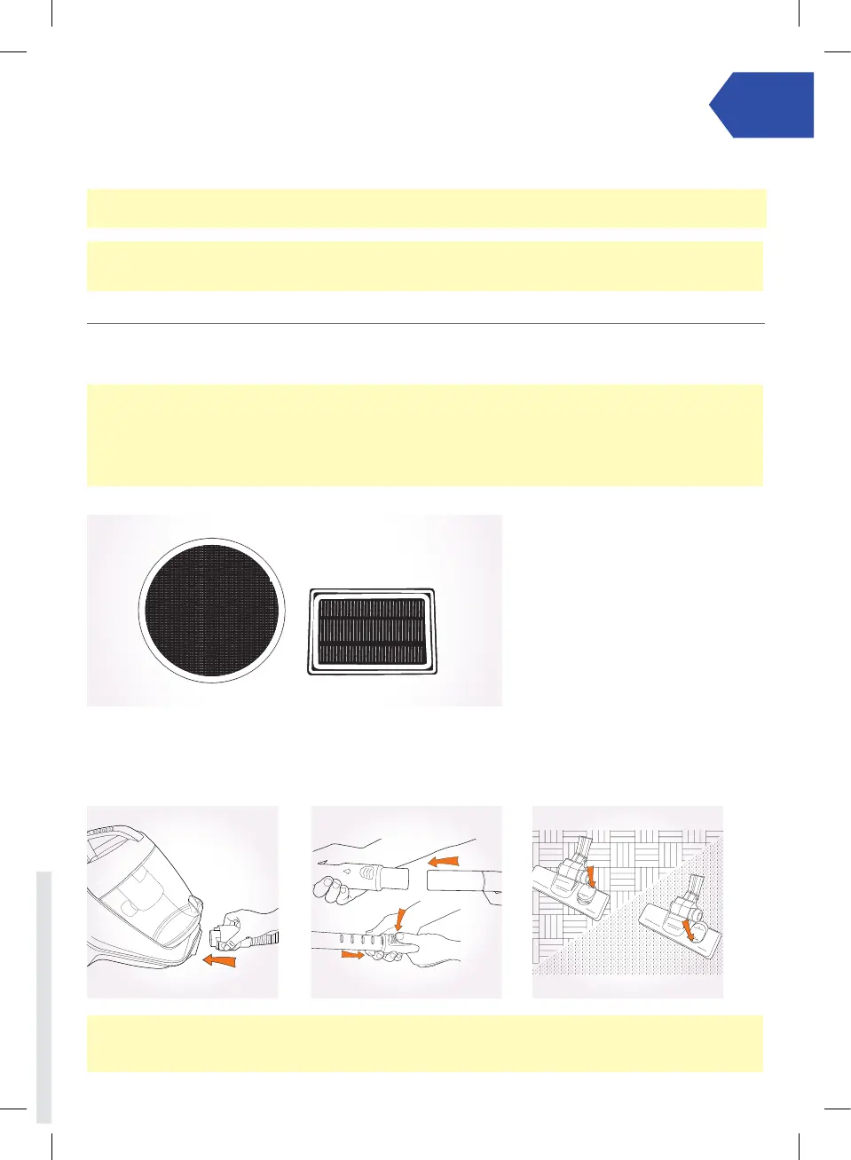 IMPORTANT: Do not use the vacuum cleaner with blocked lters and without all of the lters in place.
