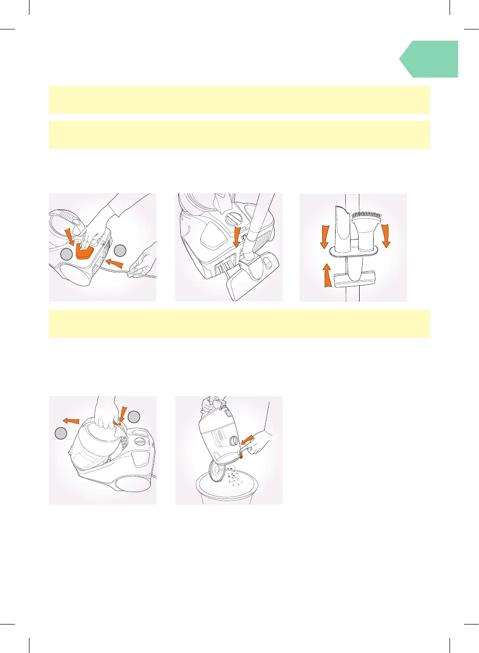 opening or emptying the dirt container or before connecting/disconnecting the attachments.