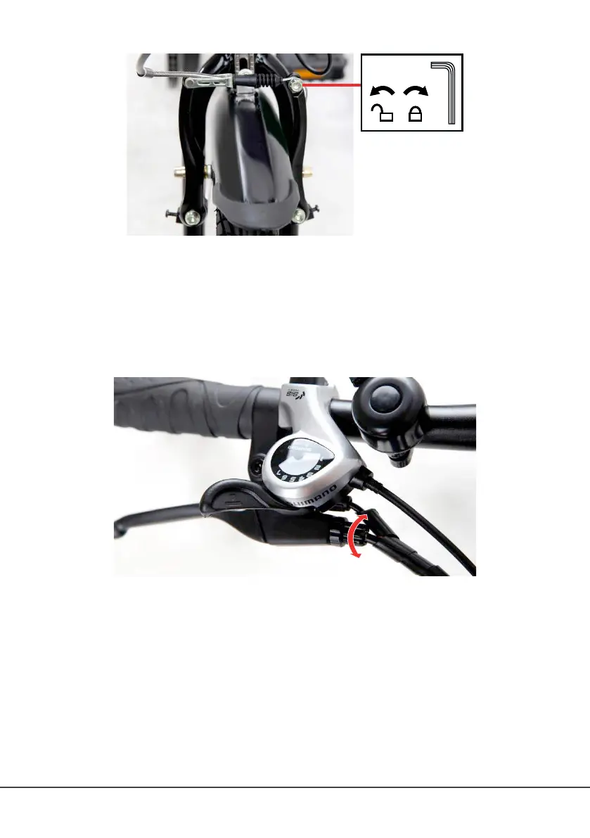 Turn clockwise to move the brake pads close to the wheel rim.