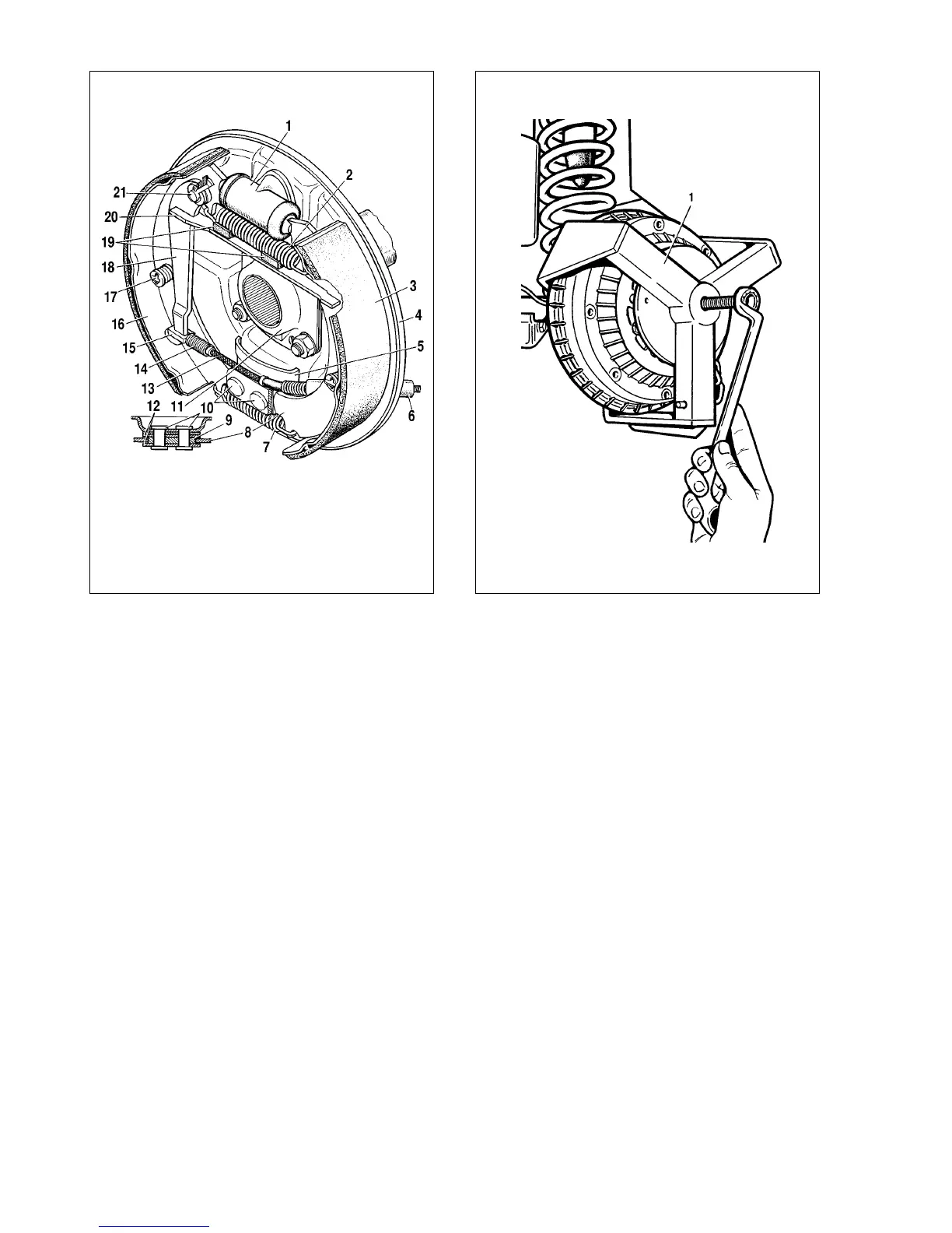 6-19) for free landing of the brake drum;