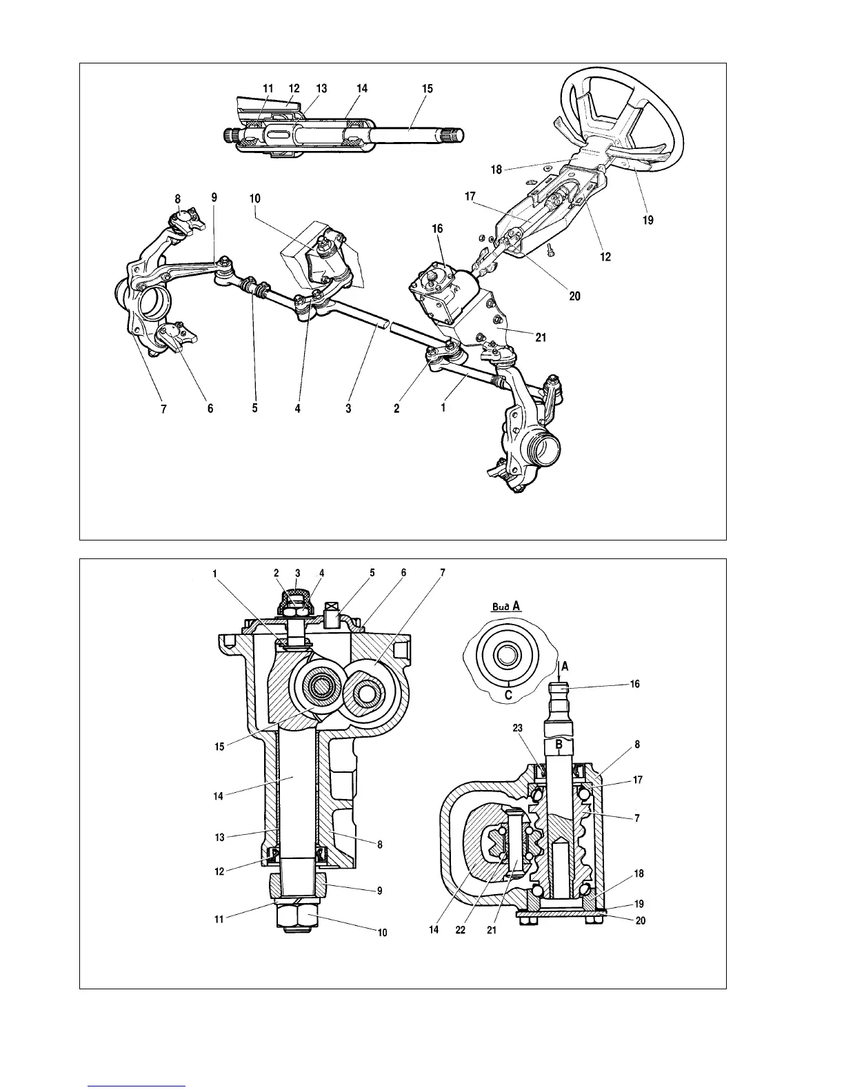 15 - upper shaft; 16 - steering box; 17 - middle shaft; 18 - column shroud; 19 - steering wheel; 20 - pinch bolt; 21 - underbody chassis arm