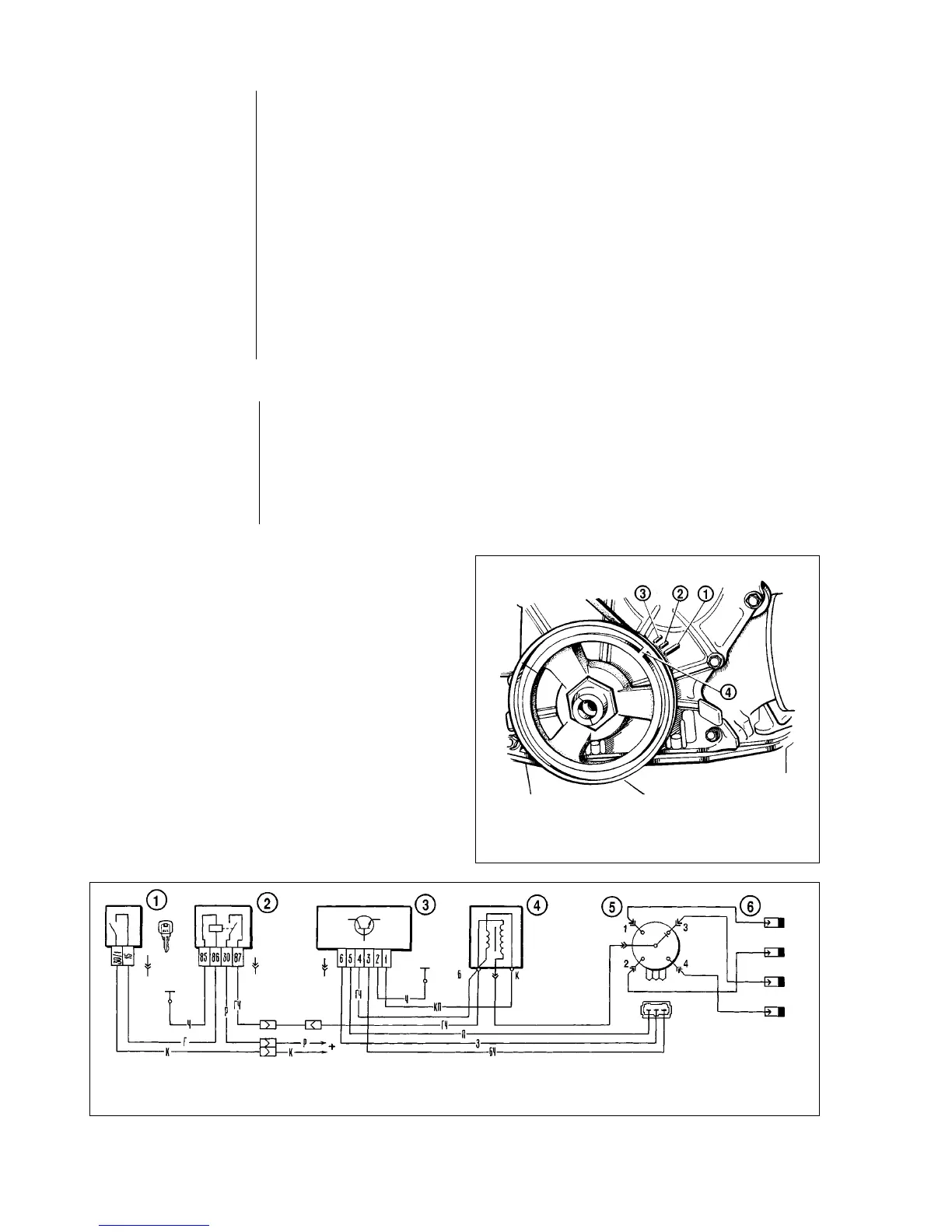 1 - TDC mark; 2 - 5°advance timing mark; 3 - 10° advance timing mark; 4 - TDC