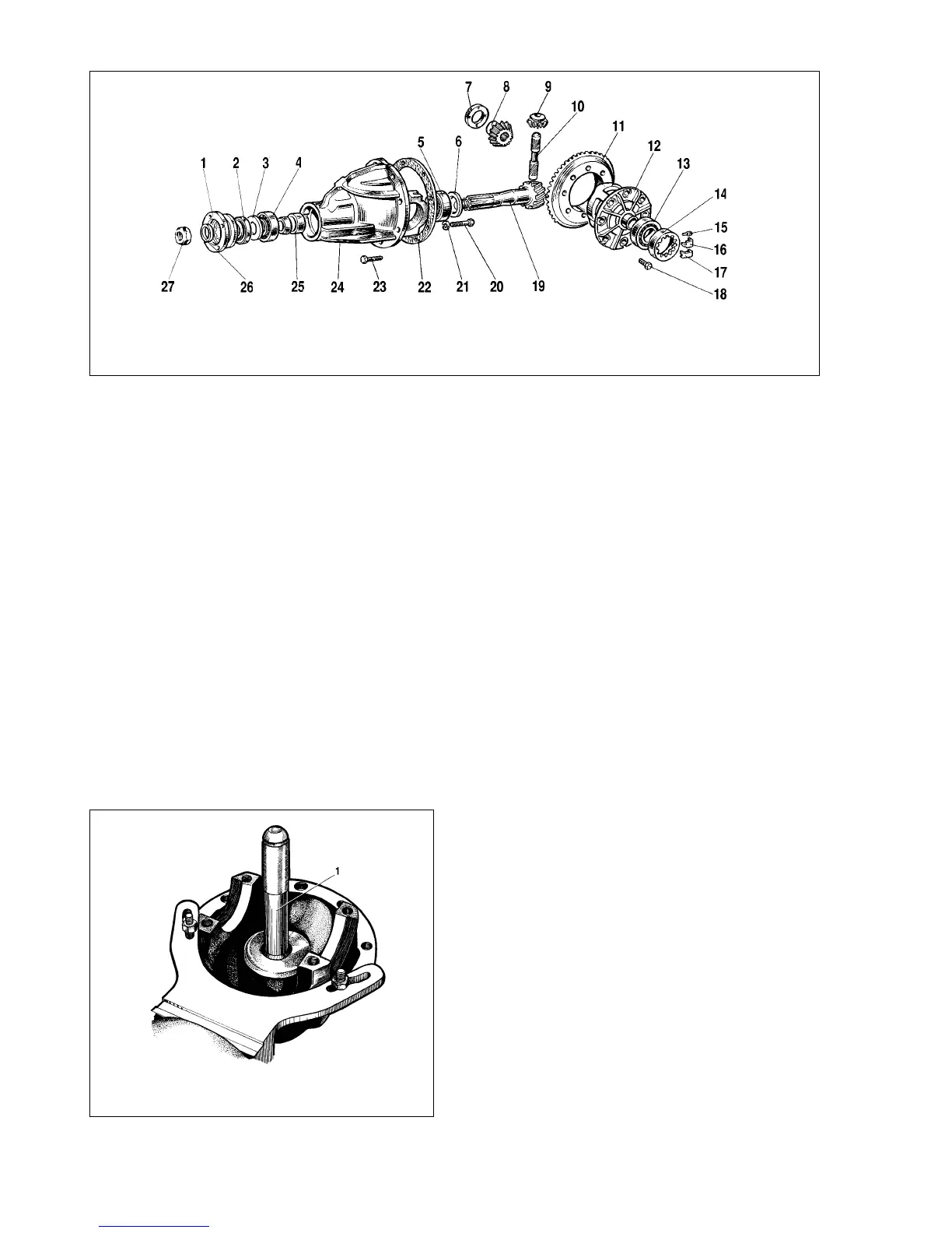gear housing; 25 - distance sleeve; 26 - flat washer; 27 - drive gear flange securing nut