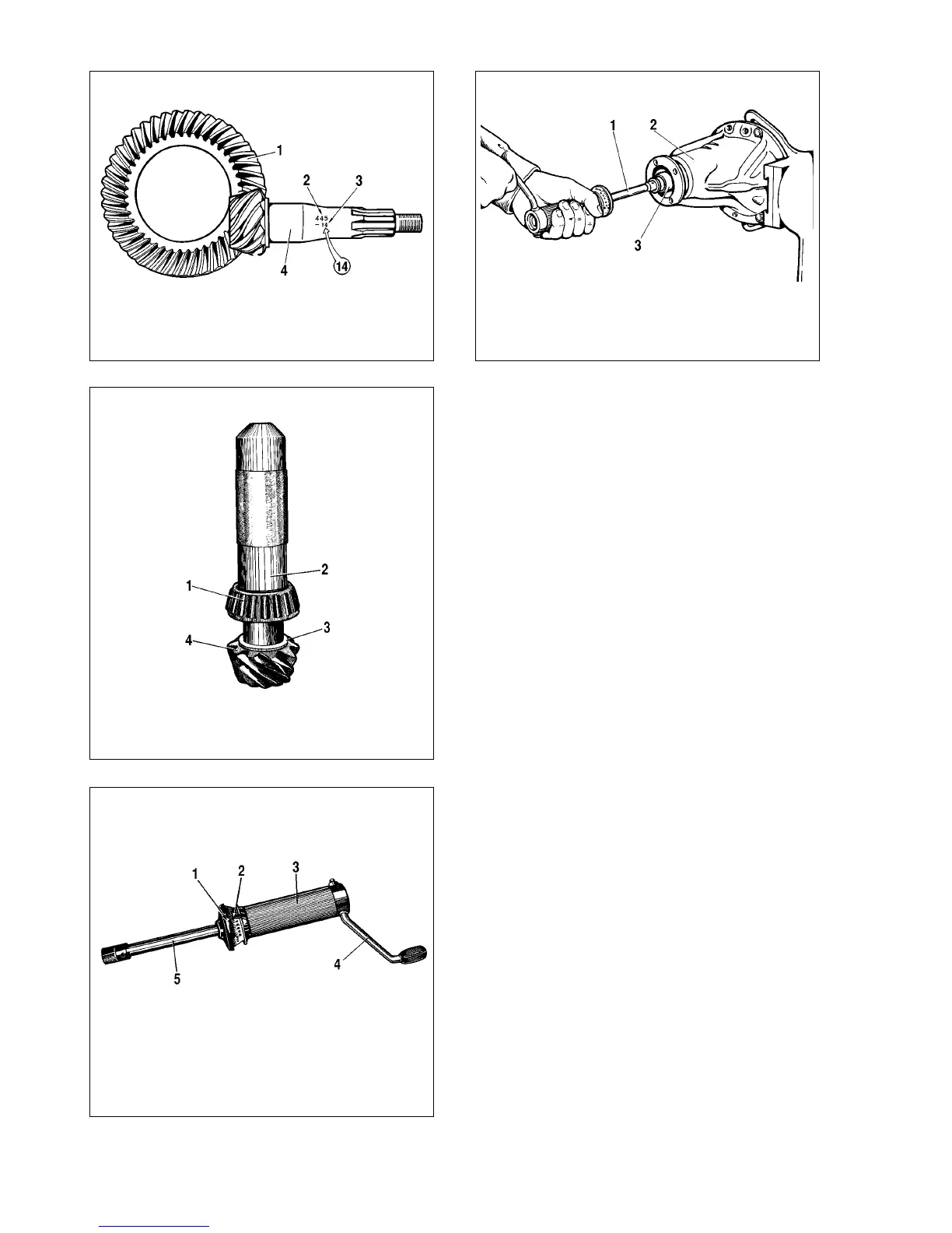 1 - roller bearing ring; 2 - tool A.70152; 3 - shim; 4 - drive gear