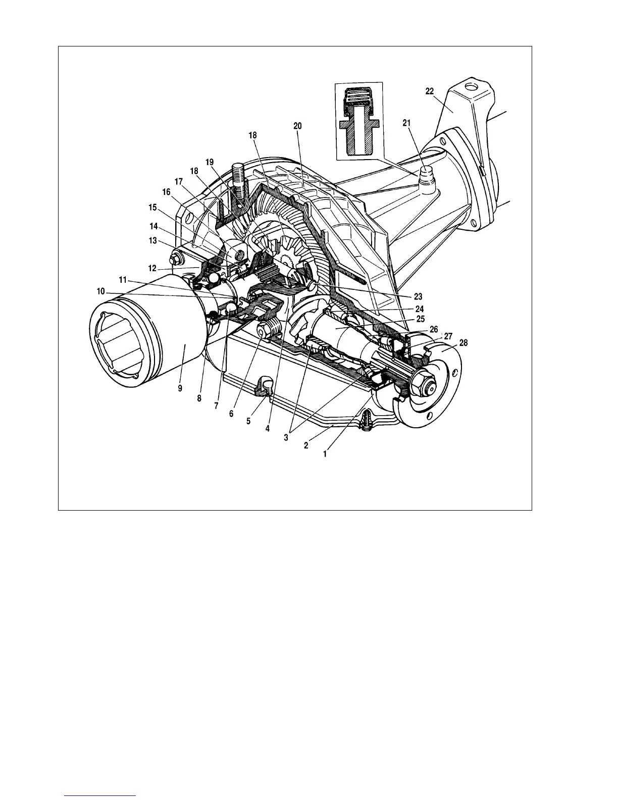 et; 23 - pinion shaft; 24 - shim; 25 - drive gear; 26 - bearing spacer; 27 - drive gear oil seal; 28 - flange