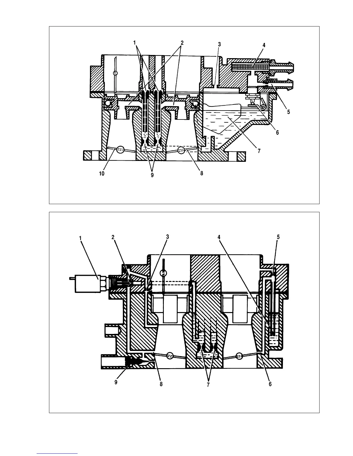- needle valve; 7 - float; 8 - secondary throttle valve; 9 - main fuel jets; 10 - primary throttle valve