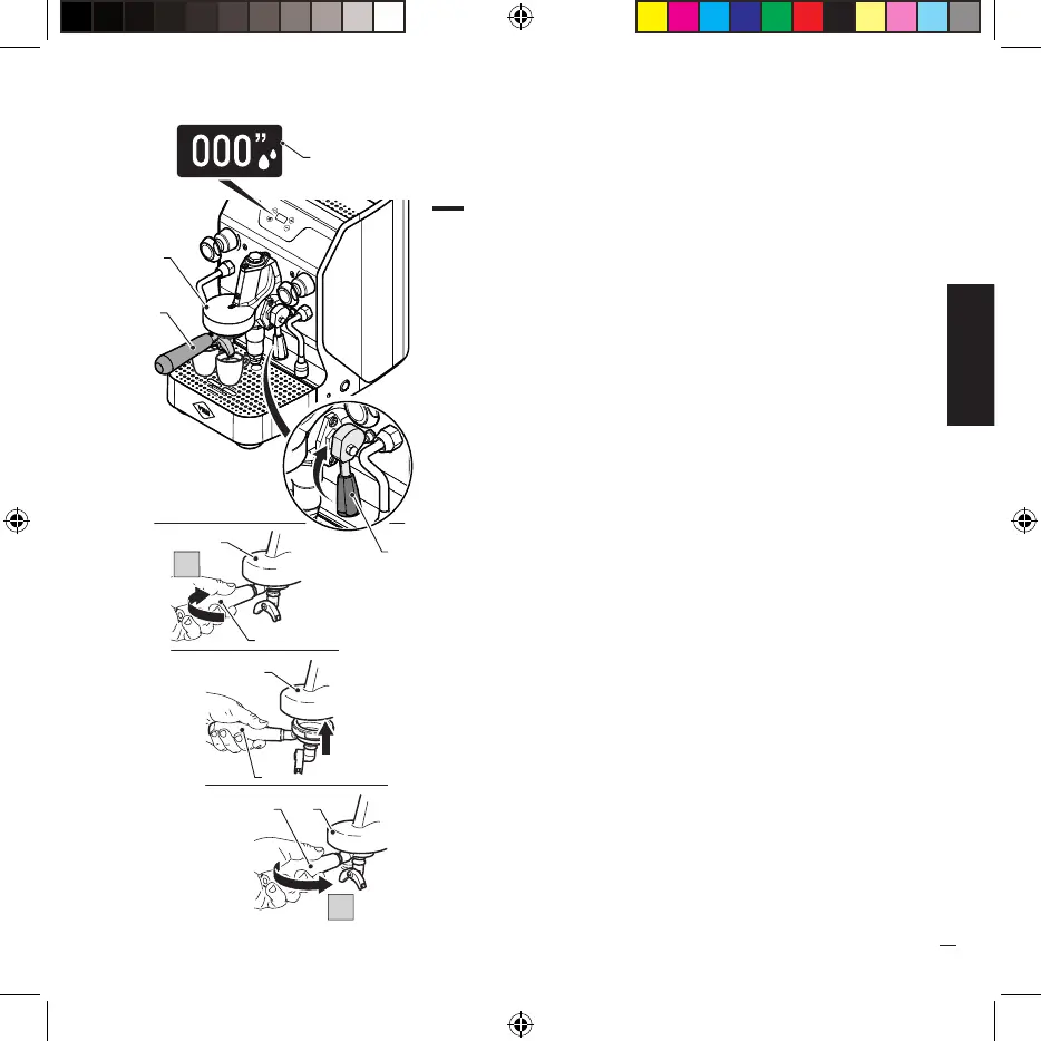 · Lift the lever (1) to brew the coffee, screen (A) appears