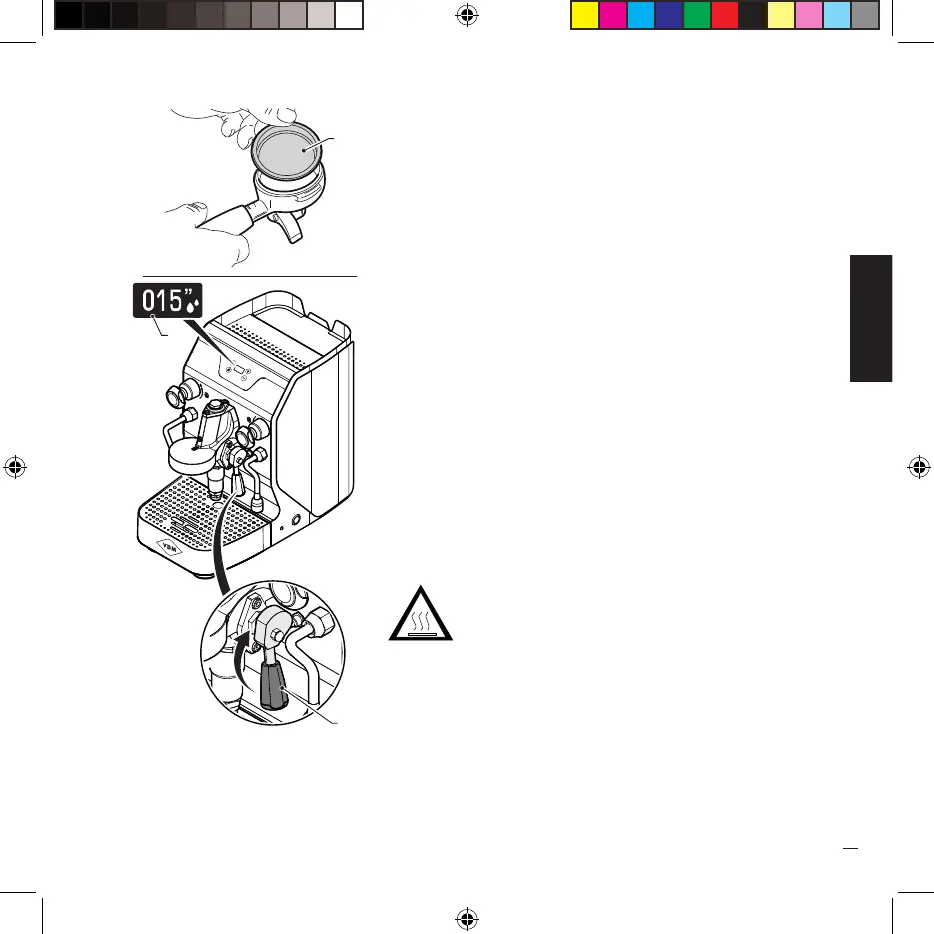 · Lift the lever (2) and make a water supply from the group,
