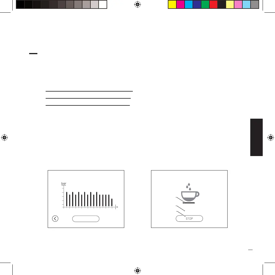 · Un graphique d’extraction s’affichera durant le versement du café si les profils de pression sont