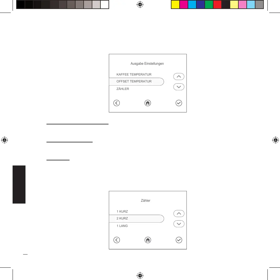 • Count up - Bildschirmseite, auf die Dauer der der Kaffeeausgabe eingestellt werden