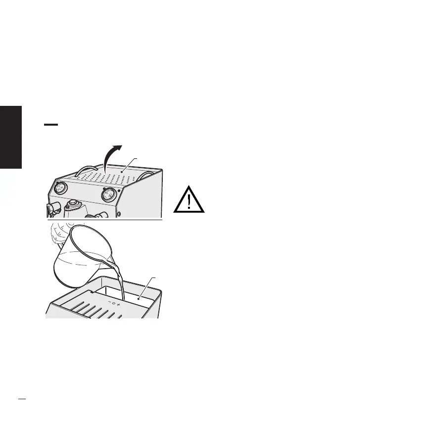 · Lift the holding surface (1) and fill the tank (2) with cold