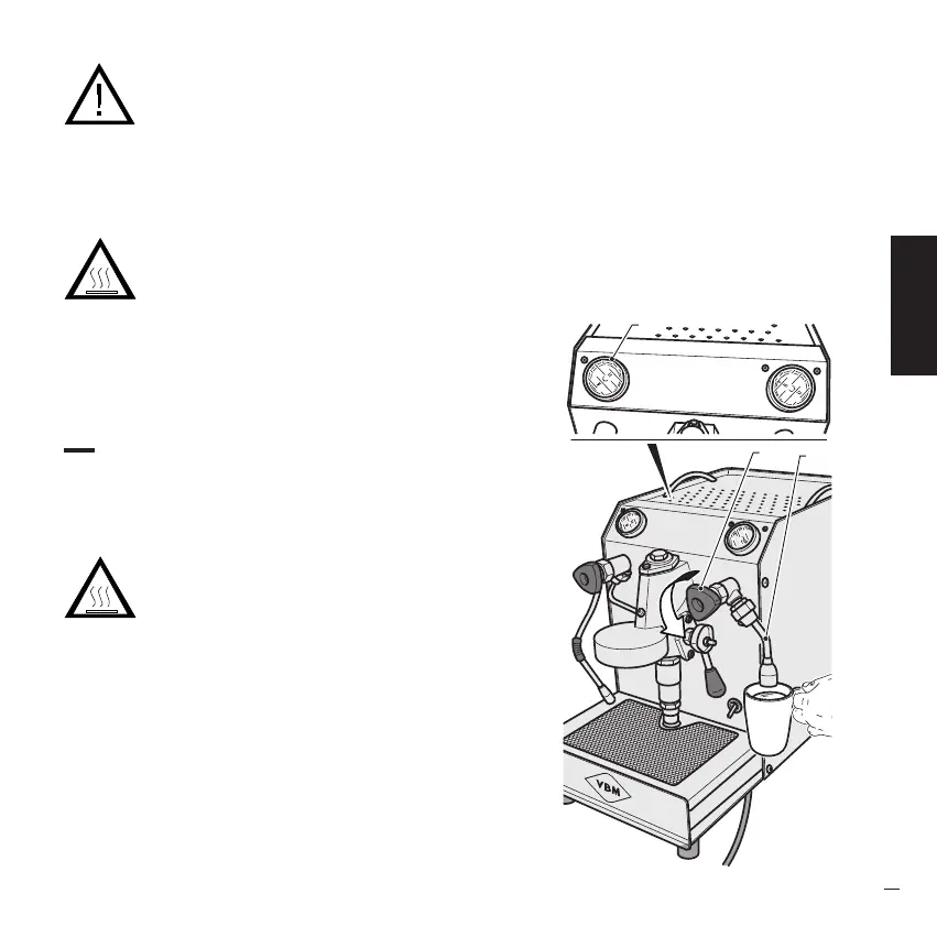 · Check that the pressure inside the steam boiler is 1.2 bar