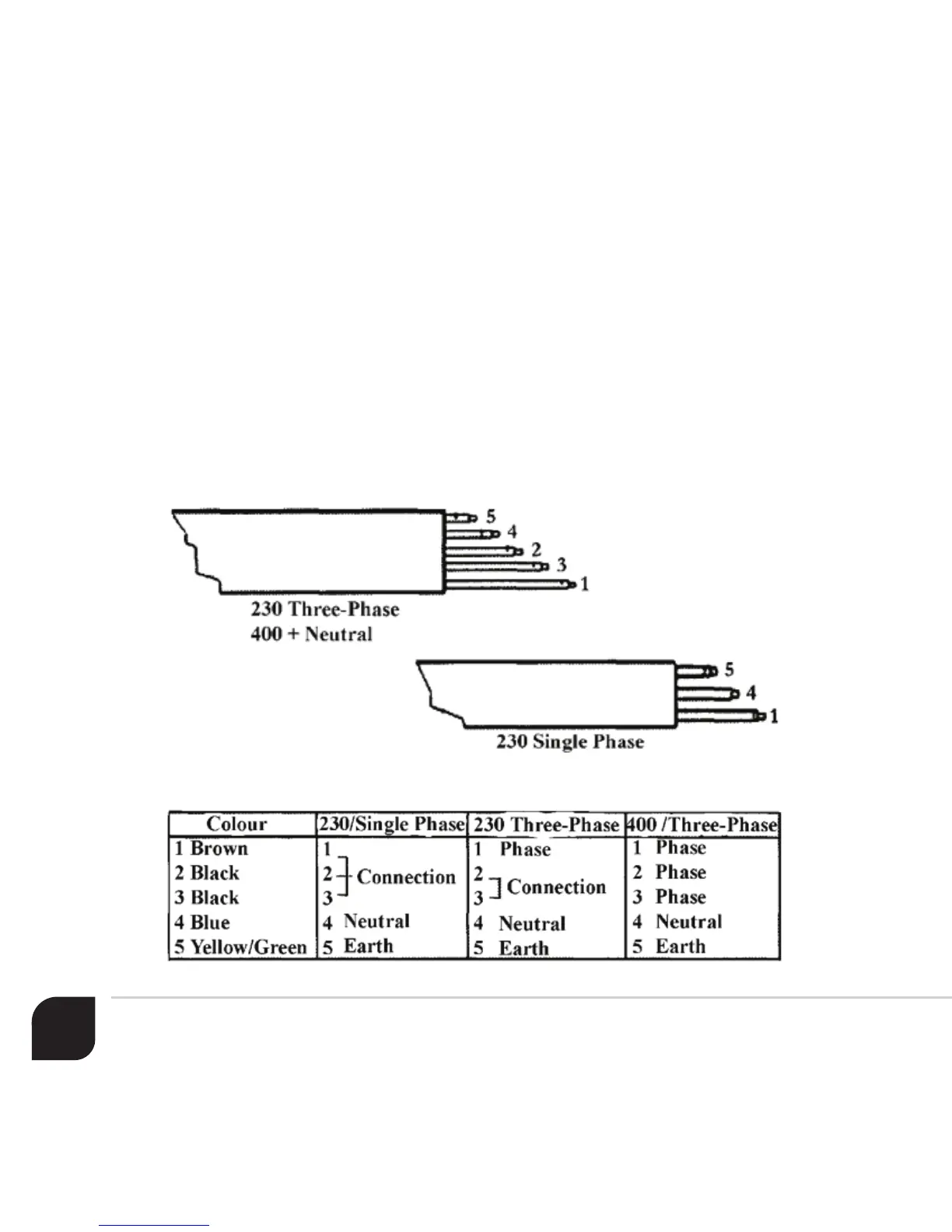 Connect the power cable to the previously installed main switch following the drawing below:
