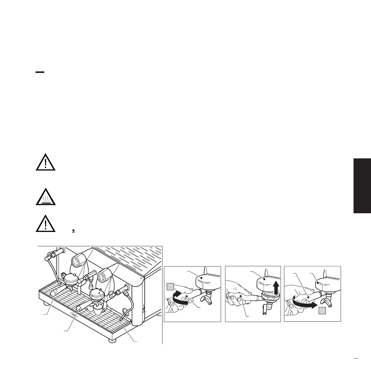ATTENTION : Effectuer aussitôt la distribution du café une fois le porte-filtre placé dans le groupe ; laisser le