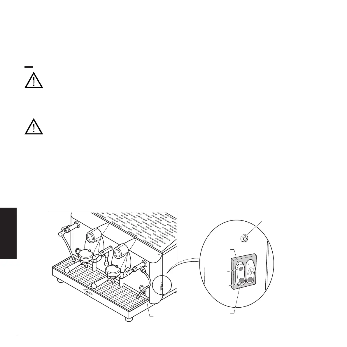 Die Maschine aus- und wieder einschalten, um die Befüllung des Boilers mit Wasser abzuschließen.