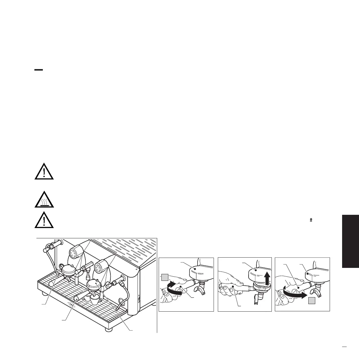 • Es wird empfohlen, den Siebträger aus der Maschine zu nehmen, eine Ausgabe ohne Kaffeepulver durchzuführen, um die Dusche