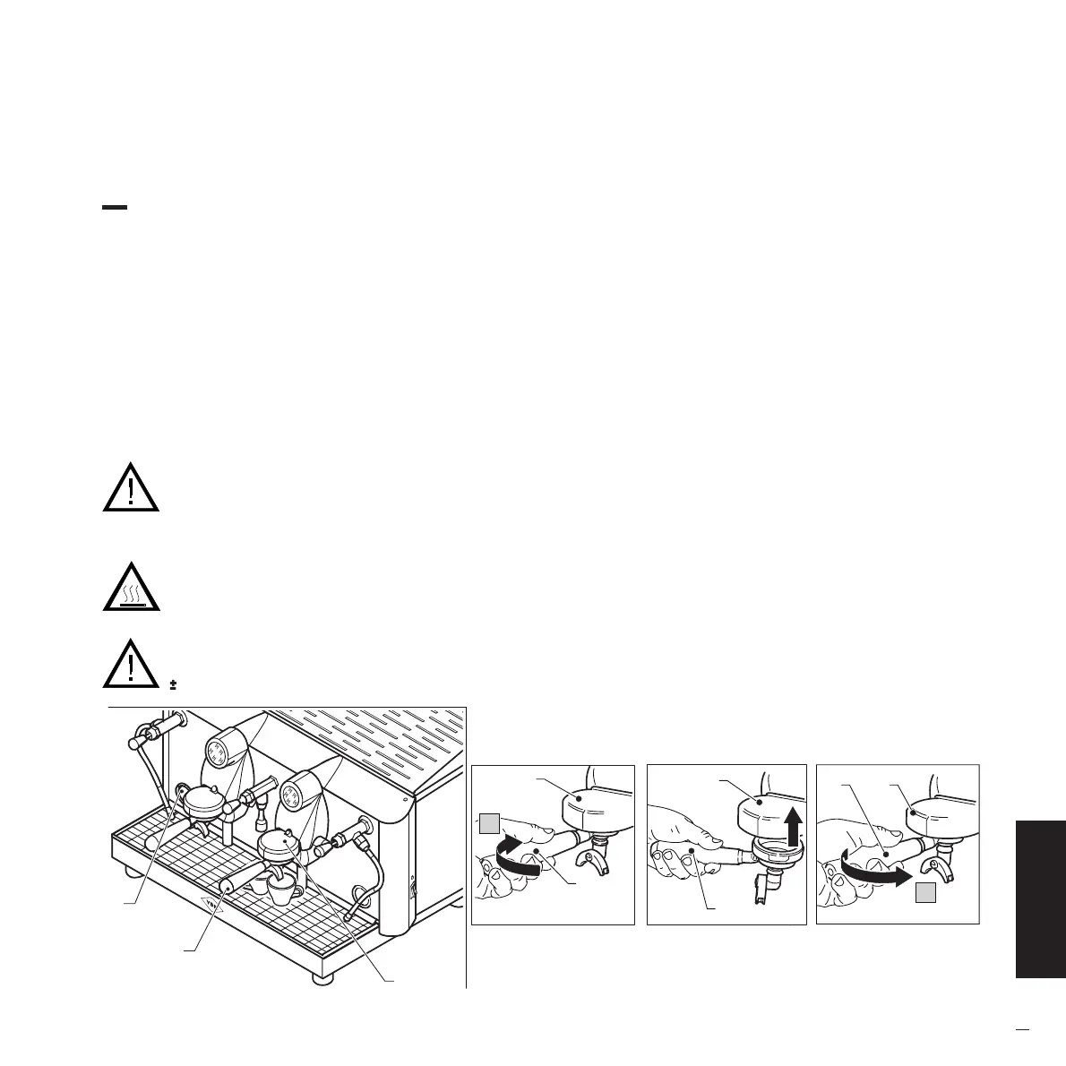 ATENCIÓN: Una vez introducido el portafiltro en el grupo, realizar de inmediato la dispensación de café; dejar