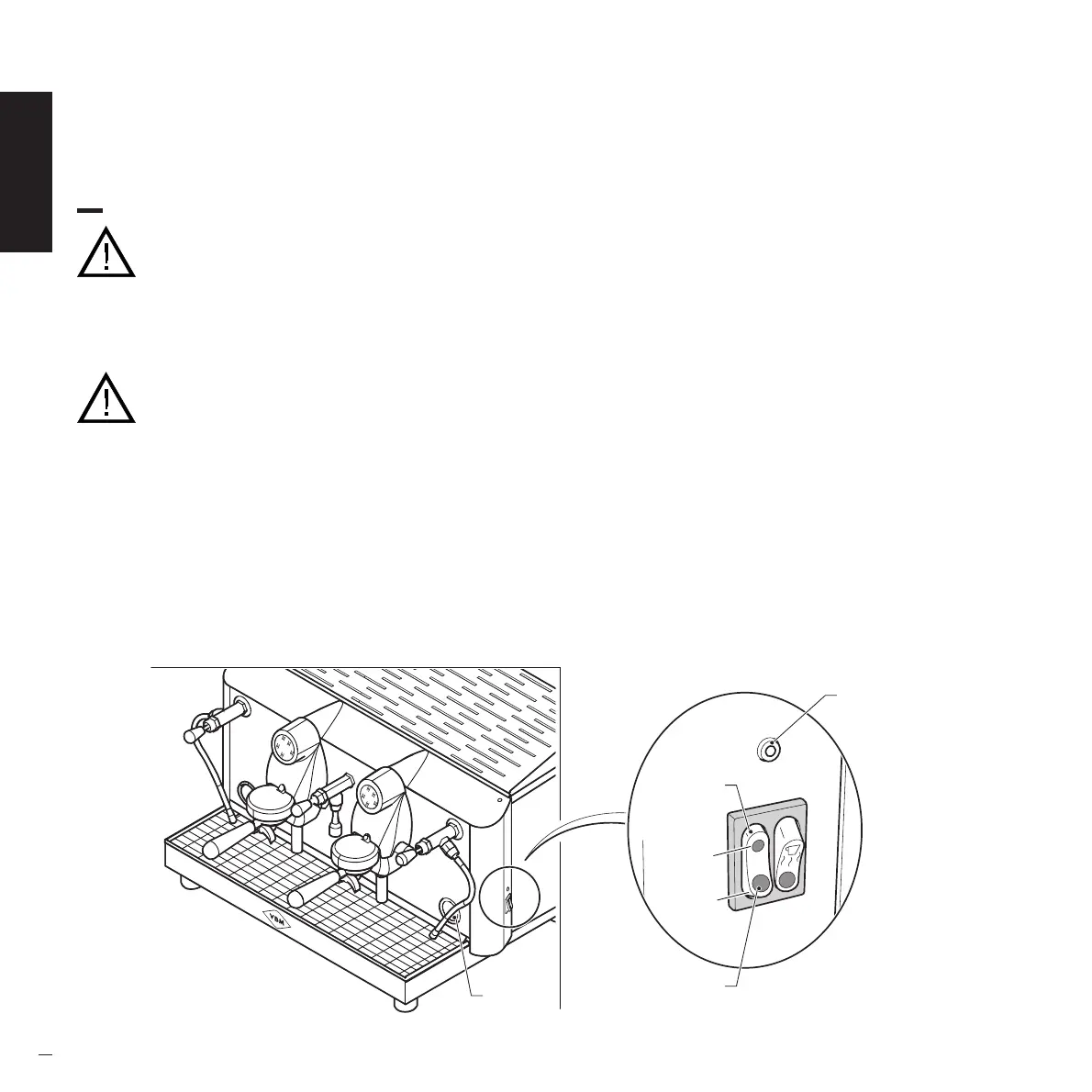 • Inserire alimentazione elettrica in macchina posizionando su ON l’interruttore differenziale posto a monte della macchina.