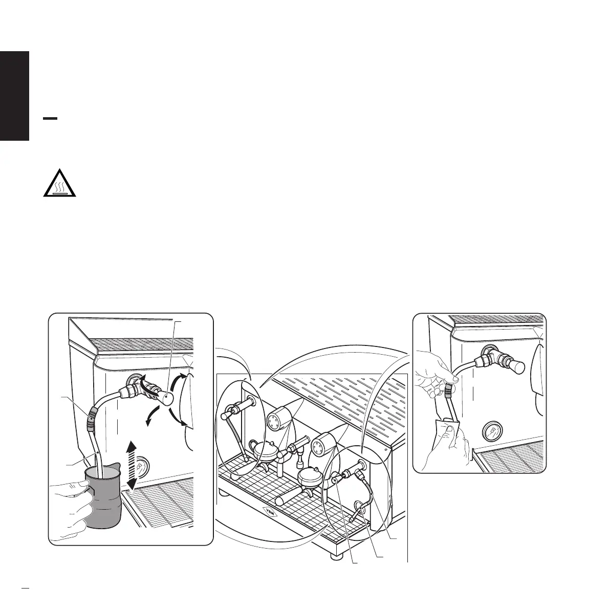 • Estrarre la lancia vapore (1) verso l’esterno quindi porre una tazza o un bricco pieno di liquido da riscaldare sotto la lancia (1).