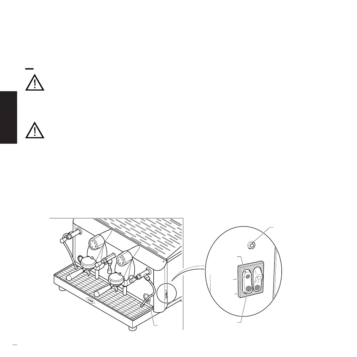 • Dispense a few times from the units, water tap and steam nozzles checking proper functioning (see the paragraph on operation