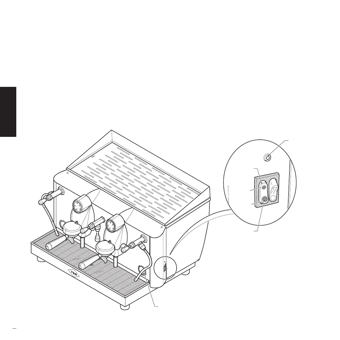 Start the machine by setting the switch (1) to ON; the LED (2) will come on.