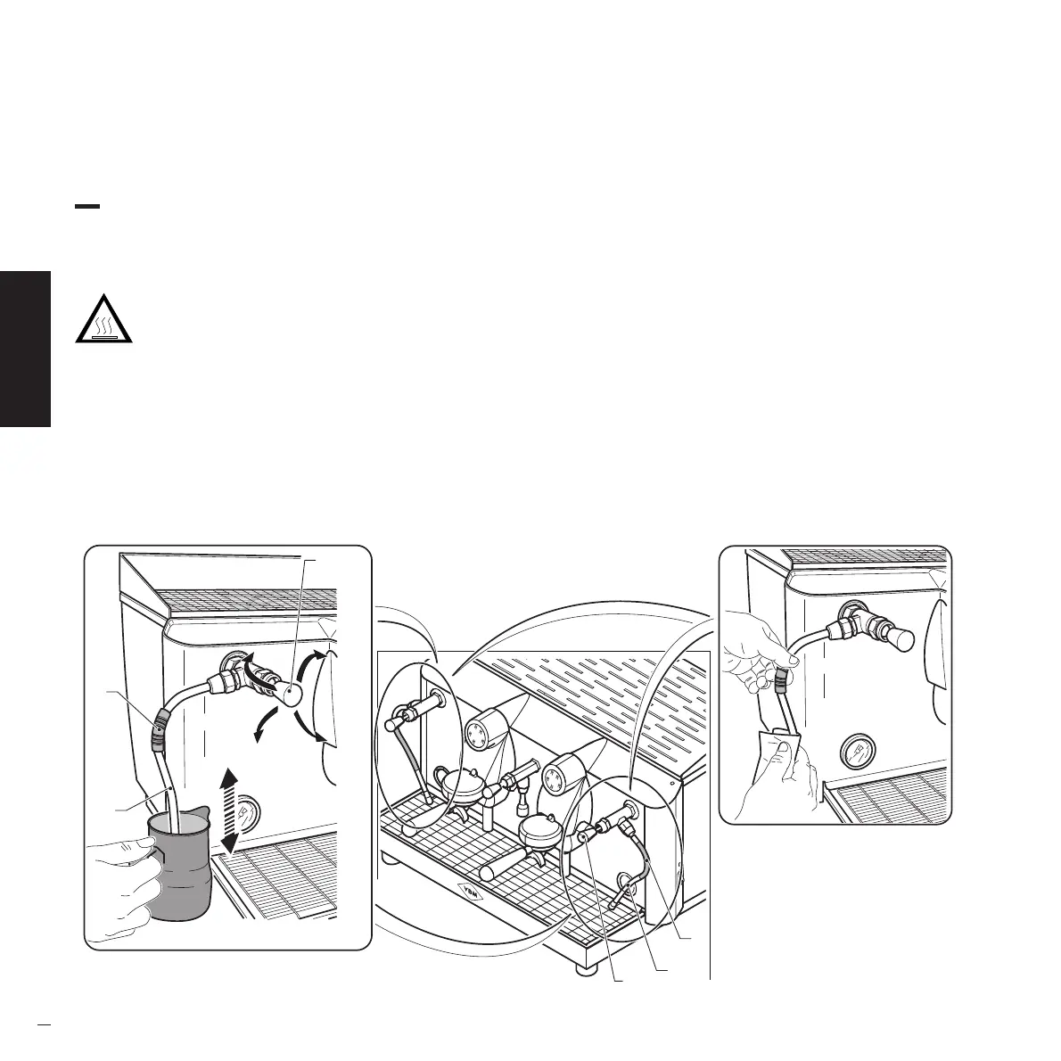 • Fully immerse the spout of the steam nozzle into the liquid and slowly open the tap (2) by moving the lever vertically or