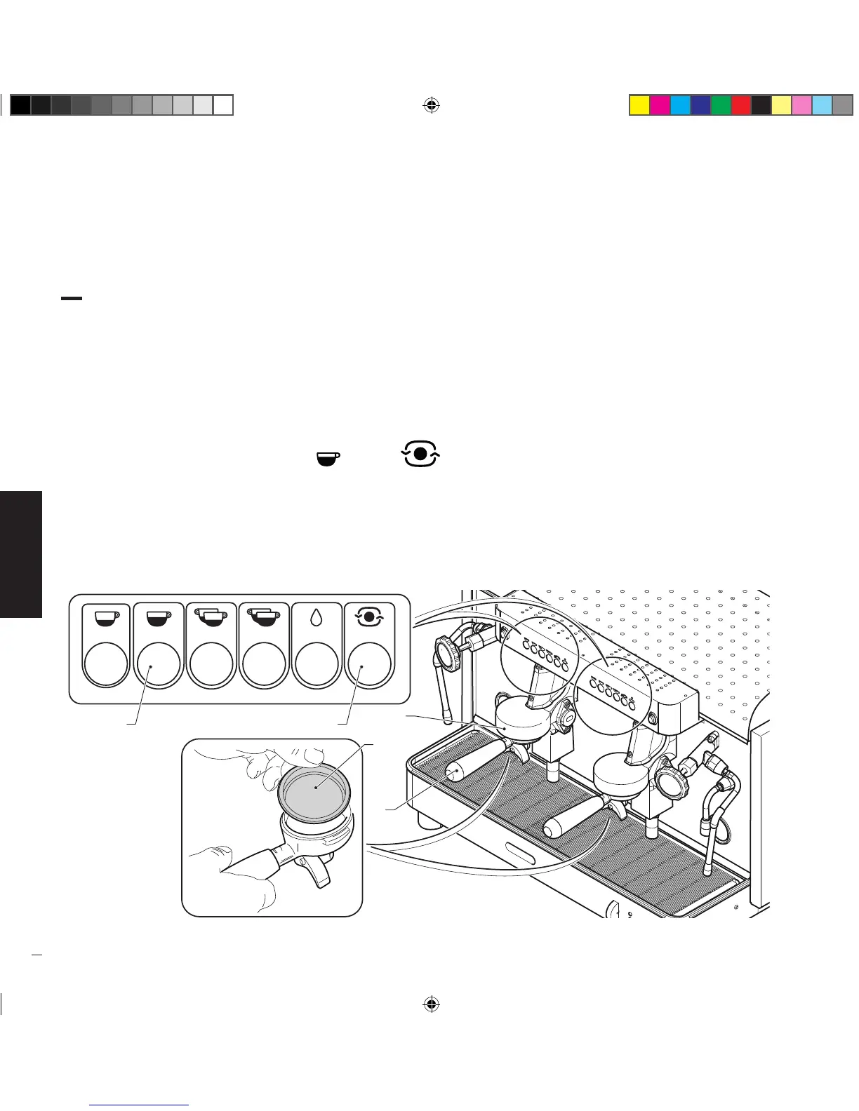 • Retirer le porte-filtre (1) du groupe (2), retirer le filtre aveugle et remonter le filtre.