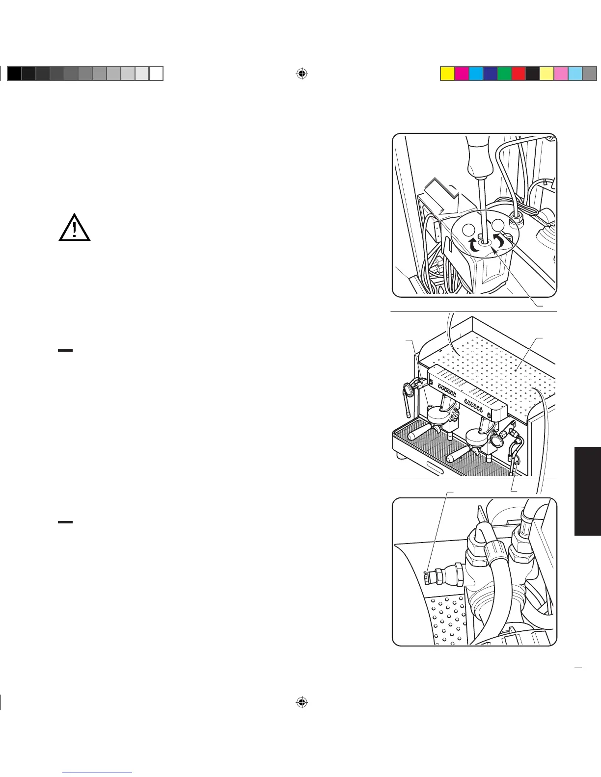 • Die Schraube (5) der Pumpe verstellen, durch Drehen IM UHRZEIGERSINN wird