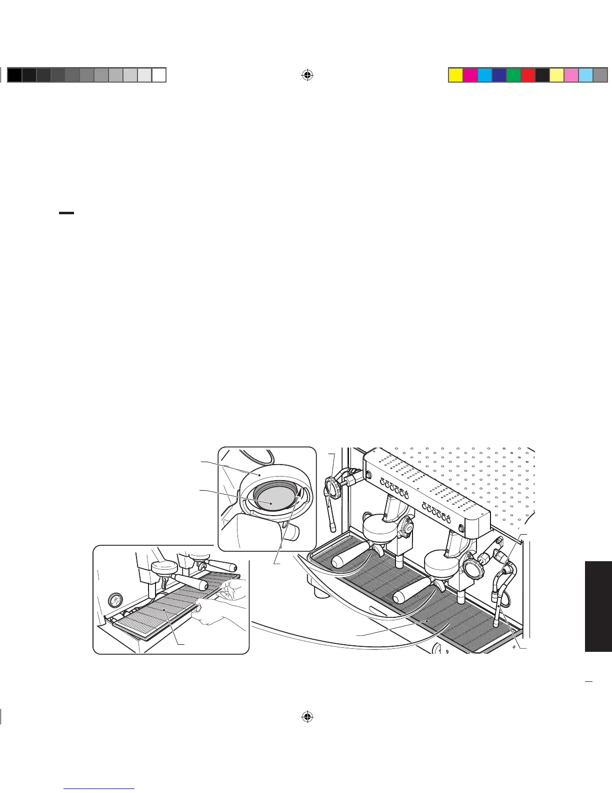 • Enjuagar los filtros y portafiltros con agua caliente y un detergente específico para disolver los depósitos de grasa del café.