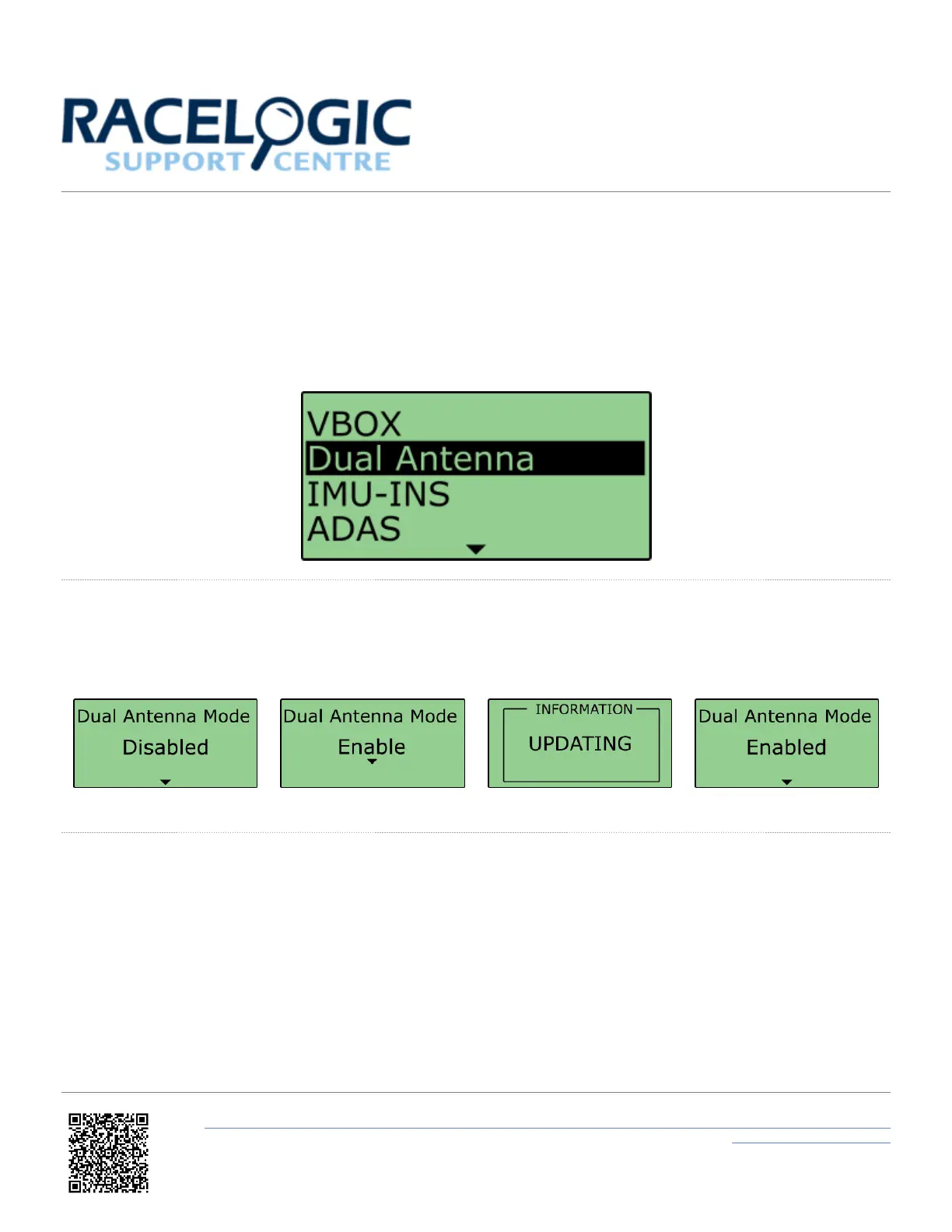 Within the 'Dual Antenna' menu, select 'Dual Antenna Mode', scroll to 'Enable' and select in order to see the full dual