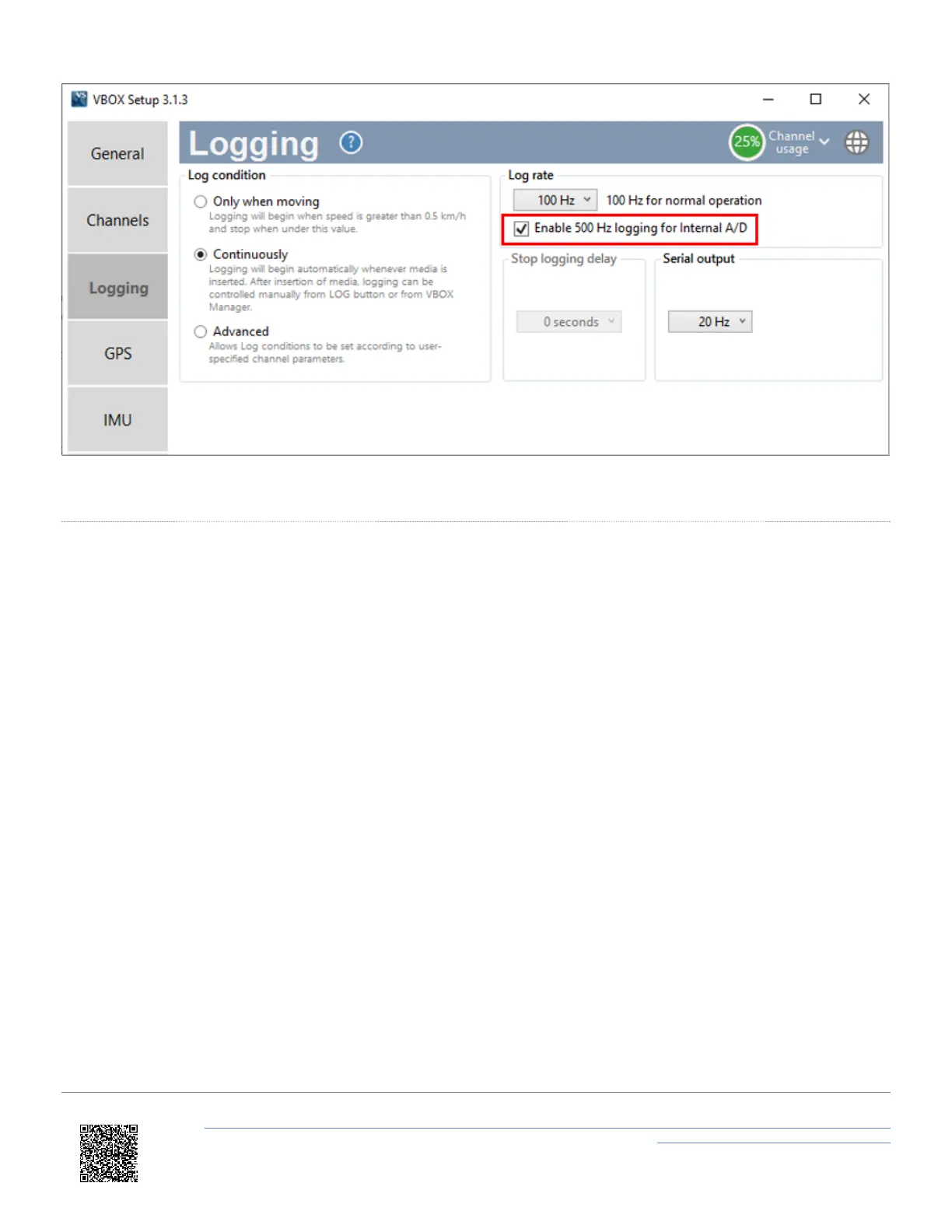 VBOX Setup A/D 500 Hz