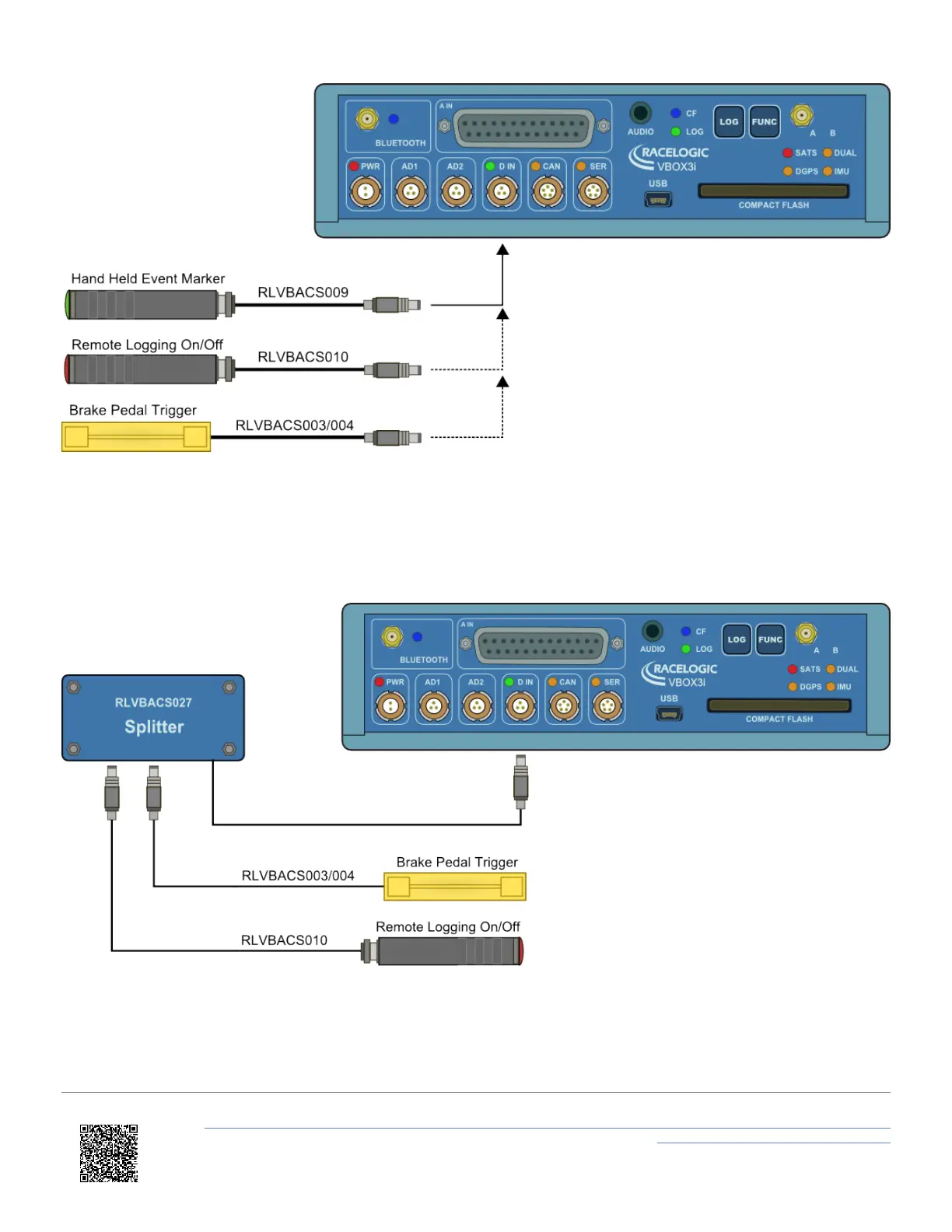 Two digital inputs devices can be connected to the VBOX 3i with the use of an additional splitter box, as shown in the